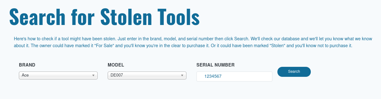 PTS gives Pawn Shops the ability to check the status of a tool before they purchase it helping them reduce their risk of loss. PTS also instantly informs our users when their tools are searched and puts Pawn Shops in contact with Law Enforcement when a stolen tool is located. That’s the true power of PowerTool Safe™.